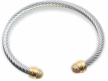 B19 - Pave Twisted Bangle Style Bracelet, Silver Coloured and Adjustable