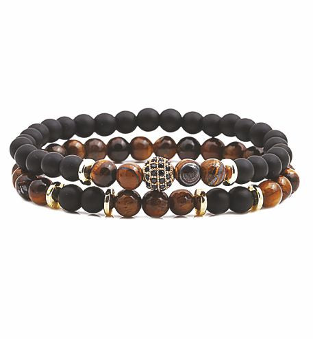 AB30 - Artisan Natural Stone Tiger Eye Double Crystal Stretch Bracelet