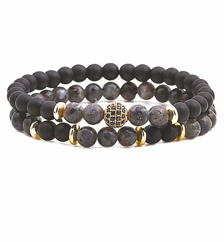 AB33 - Artisan Natural Stone Labradorite Double Crystal Stretch Bracelet