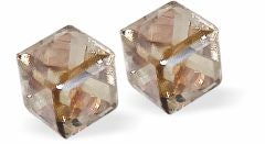 E623 - Austrian Crystal Oblique Cube Stud Earrings, 4mm in size in Golden Shadow, Sterling Silver Earwires