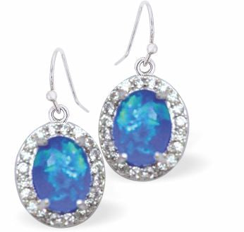 DR20 - Opalite Oval Drop Earrings in Soft Blue with Crystal Frame, Rhodium Plated