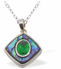 P713 - Paua Shell Rounded Rhombus Necklace, Rhodium Plated