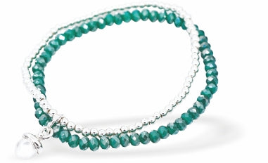 BR73 - Stretch Double Bracelet With Green and Silver Beads with Acorn Charm