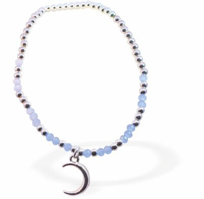 BR58 - Stretch Bracelet With Light Blue Mix Beads and Moon Charm