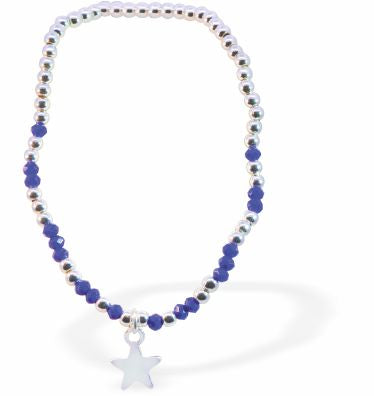 BR60 - Stretch Bracelet With Dark Blue Mix Beads and Star Charm
