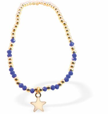 BR61 - Stretch Bracelet With Dark Blue and Golden Mix Beads and Golden Star Charm