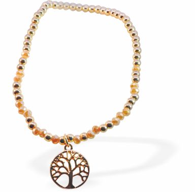 BR64 - Stretch bracelet with Multi Colour Mix and Gold Tree of Life