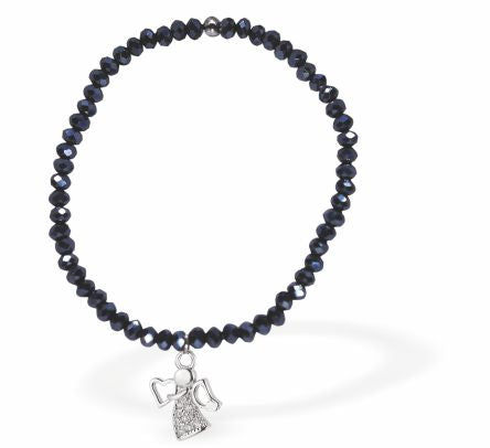 BR69 - Stretch Dark Blue Beaded bracelet with Angel Charm