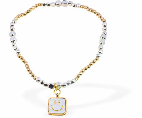 SKU: BR70Original price £3.95 - Original price £3.95Original price£3.95£3.95 - £3.95Current price £3.95| /Stretch Multi Beaded Bracelet with Smiley Face Charm Rhodium Plated 6cm in diameter Nickel Free, Hypoallergenic