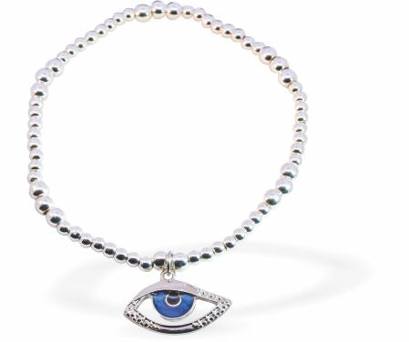 BR66 - Silver Coloured Stretch bracelet with Blue Devils Eye Charm