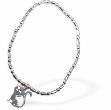 BR34 - Stretch Charm Bracelet with Silver Coloured Beads, Rhodium Plated, and Cat Charm