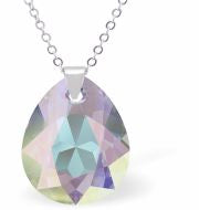 MN25 - Austrian Crystal Special Cut Peardrop Necklace in Aurora Borealis with a Choice of Chains