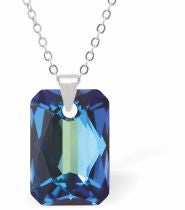 MN40 - Austrian Crystal Special Cut Oblique Square Necklace in Bermuda Blue with a Choice of Chains