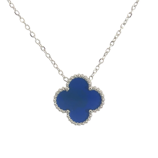 MP62 - Blue Four Leaf Clover Pendant Necklace, Silver Coloured