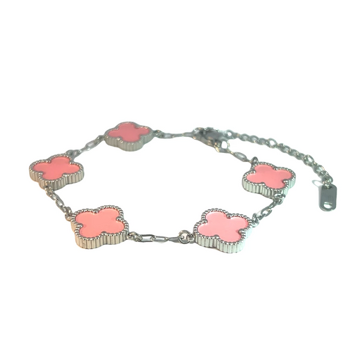 MP54 - Pink Four Leaf Clover Double-Sided Bracelet, Silver Coloured