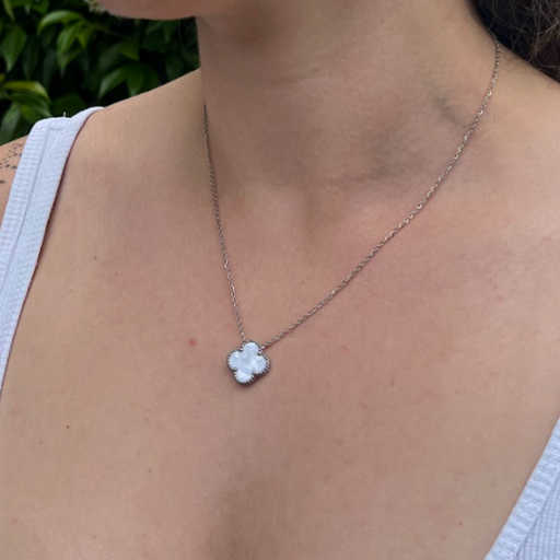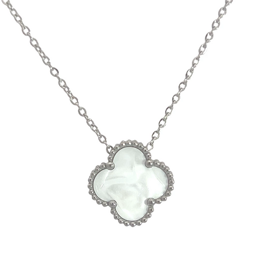 MP50 - White Four Leaf Clover Pendant Necklace, Silver Coloured