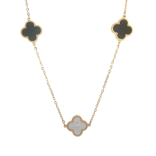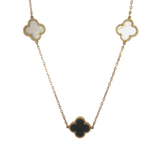 MP45 - Three Black and White Four Leaf Clover Necklace, 18K Gold Plated