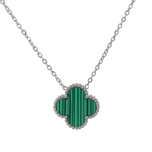 MP59 - Green Four Leaf Clover Pendant Necklace, Silver Coloured