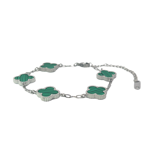 MP60 - Green Four Leaf Clover Double-Sided Bracelet, Silver Coloured