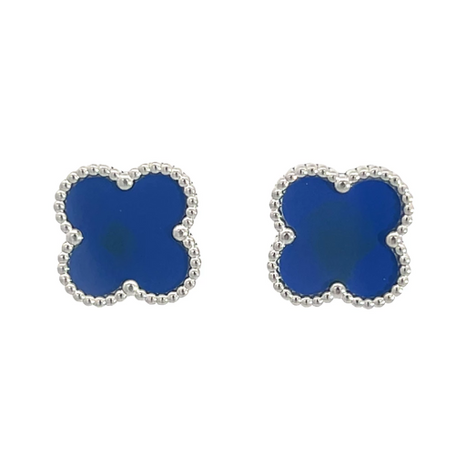 MP64 - Blue Four Leaf Clover Stud Earrings, Silver Coloured