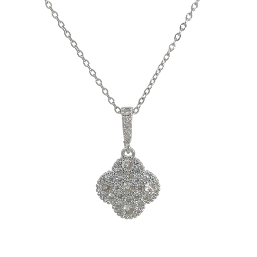 MP69 - Pave Crystal Four Leaf Clover Pendant Necklace, Silver Coloured
