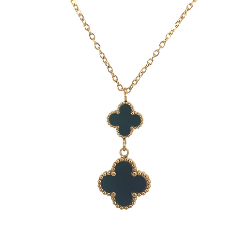 MP79 - Double Drop Black Four Leaf Clover Pendant Necklace, 18K Gold Plated