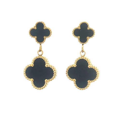 MP80 - Black Double Drop Four Leaf Clover Stud Drop Earrings, 18K Gold Plated