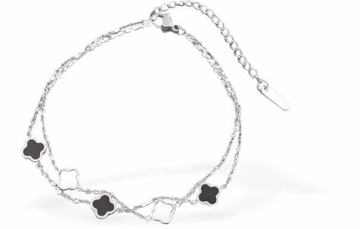 SKU: MP93Original price £4.95 - Original price £4.95Original price£4.95£4.95 - £4.95Current price £4.95| /Enjoy designer quality at an affordable price with our silver coloured Four Leaf Clover Double chain Bracelet with black and white detailing...
