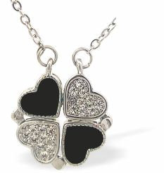 MP96 - Pave Crystal and Black Four Leaf Clover Transformable Pendant Necklace, Silver Coloured