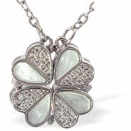 MP97 - Pave Crystal and White Four Leaf Clover Transformable Pendant Necklace, Silver Coloured