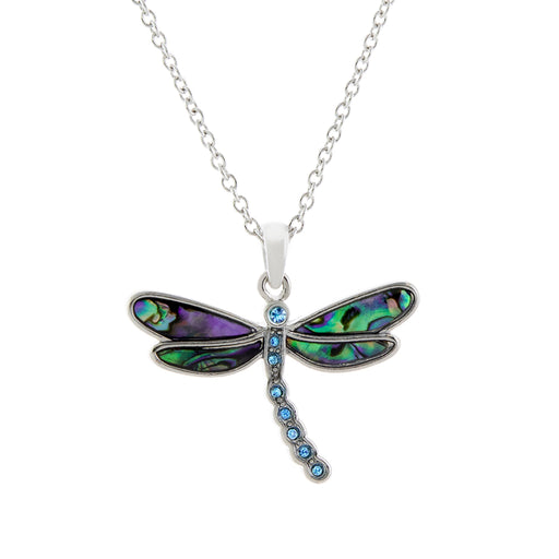 P178 - Natural Paua Shell Dragonfly Necklace, Rhodium Plated