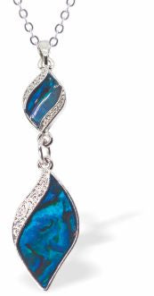 P1429 - Paua Shell Crossed Pear Drop Necklace, Rhodium Plated
