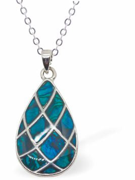 SKU: P235Original price £3.75 - Original price £3.75Original price£3.75£3.75 - £3.75Current price £3.75| /Natural Paua Shell Classic Drop Necklace 30 mm in size - 18" Chain Rhodium Plated, hypoallergenic Nickel, Lead and Cadmium free