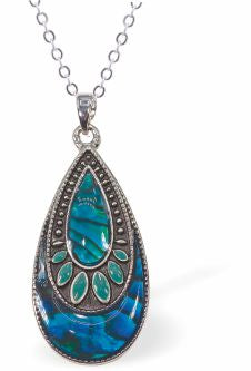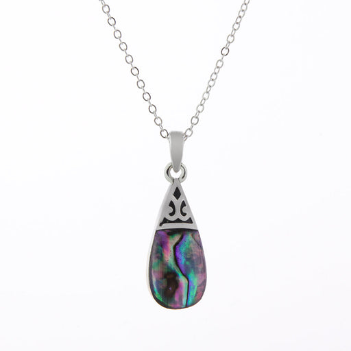 P1446 - Paua Shell Antique Peardrop Necklace, Rhodium Plated