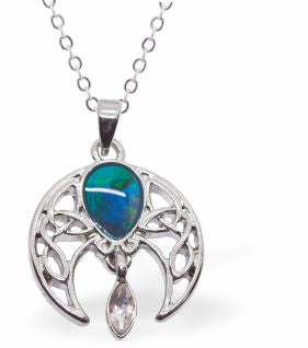P1433 - Paua Shell Celtic Drop Necklace, Rhodium Plated