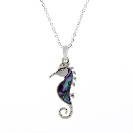 P200 - Paua Shell Sea Horse Necklace, Rhodium Plated