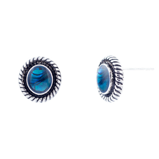 P238 - Paua Shell Classic Oval Stud Earrings, Rhodium Plated