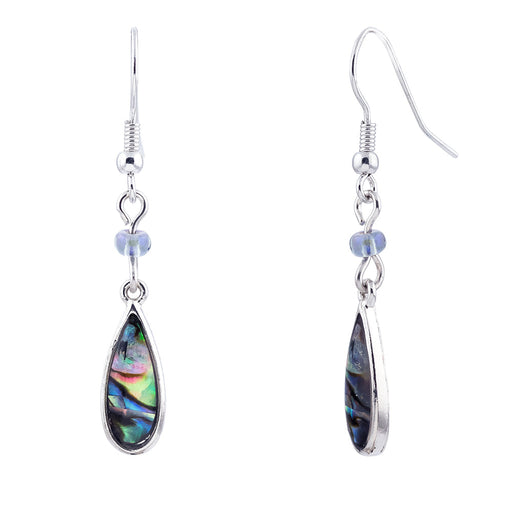 P239 - Paua Shell Droplet Earrings, Rhodium Plated