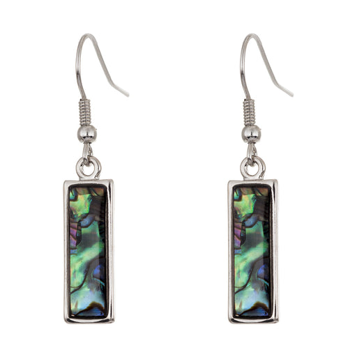 P240 - Paua Shell Baguette Drop Earrings, Rhodium Plated