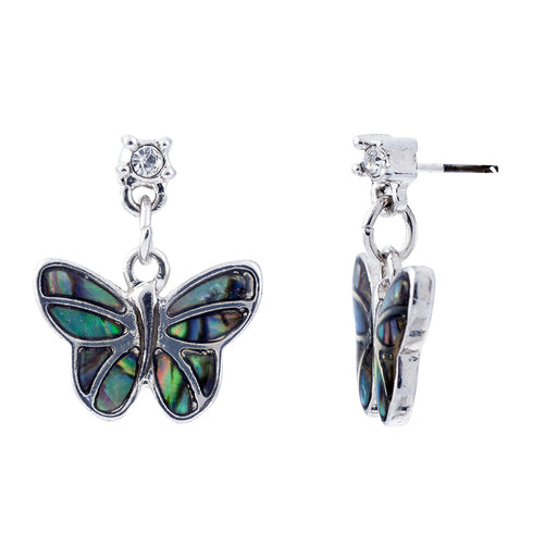 P273 - Paua Shell Butterfly Drop Earrings, Rhodium Plated