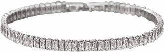 B03 - Sparkly Link Bracelet with Clasp and Clear Rectangular Crystals, Rhodium Plated